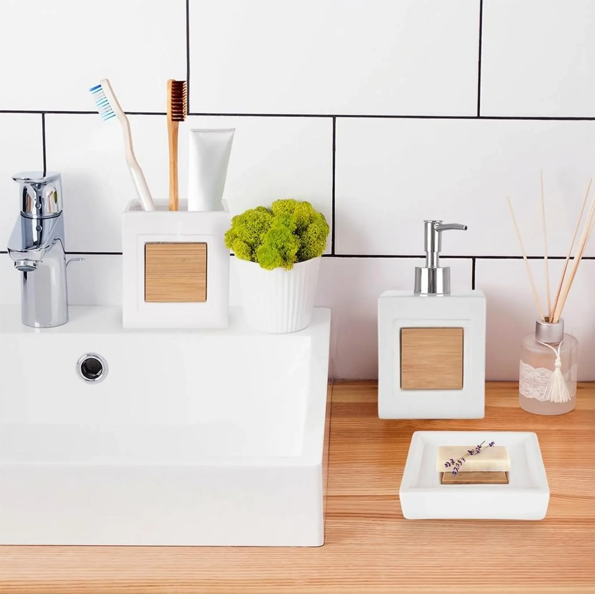 Dieser stilvolle Badbecher vereint modernes Design mit praktischer Alltagstauglichkeit. Gefertigt aus robustem Dolomit und ergänzt durch ein dekoratives Bambuselement, sorgt er für Ordnung am Waschbecken und setzt zugleich einen eleganten Akzent im Badezimmer.