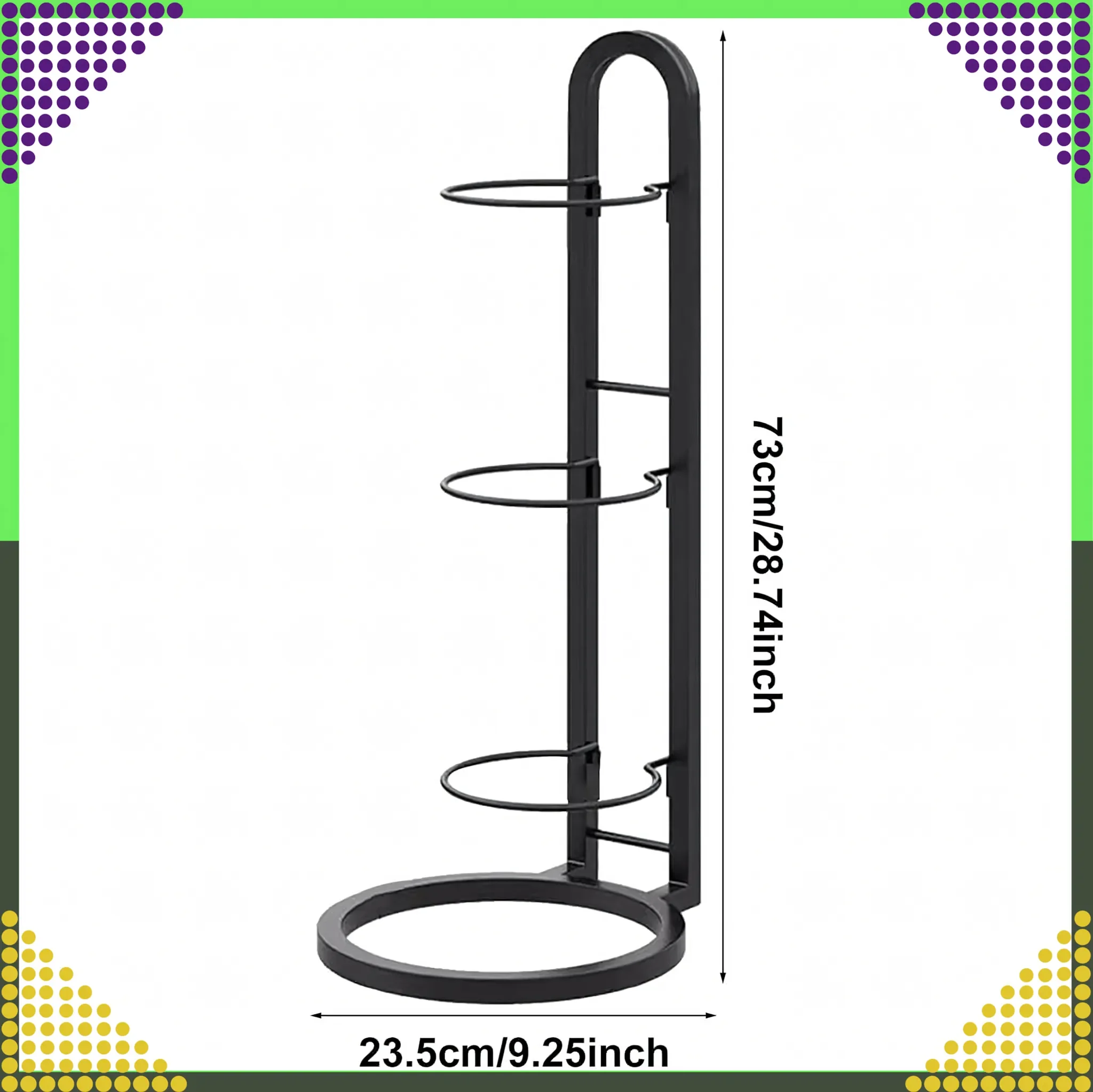 Dieser kompakte Ballständer aus robustem Metall bietet eine praktische Lösung zur übersichtlichen Aufbewahrung von bis zu drei Sportbällen. Ob im Kinderzimmer, in der Garage, in der Sporthalle oder im Verkaufsraum – die Bälle sind jederzeit griffbereit und ordentlich verstaut.