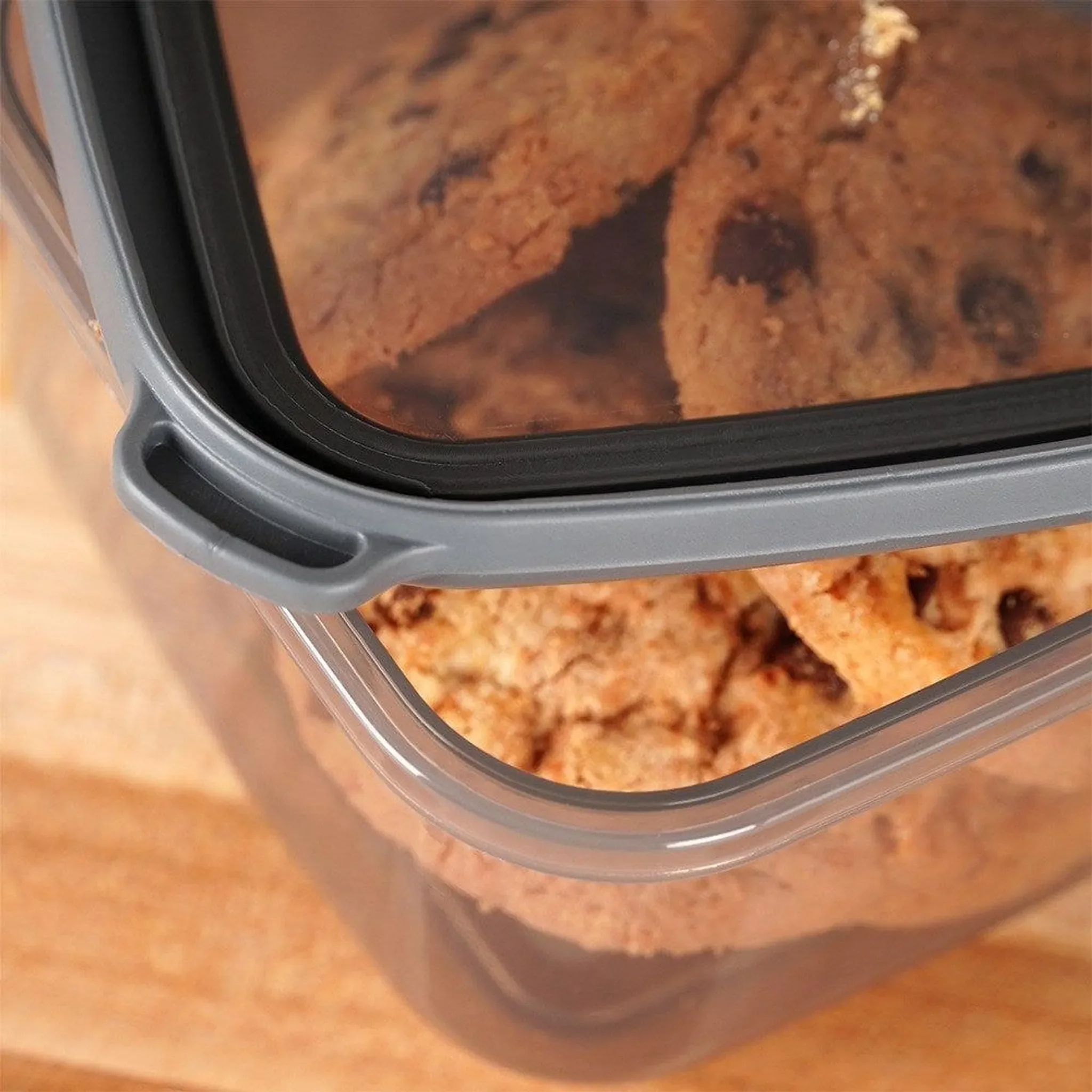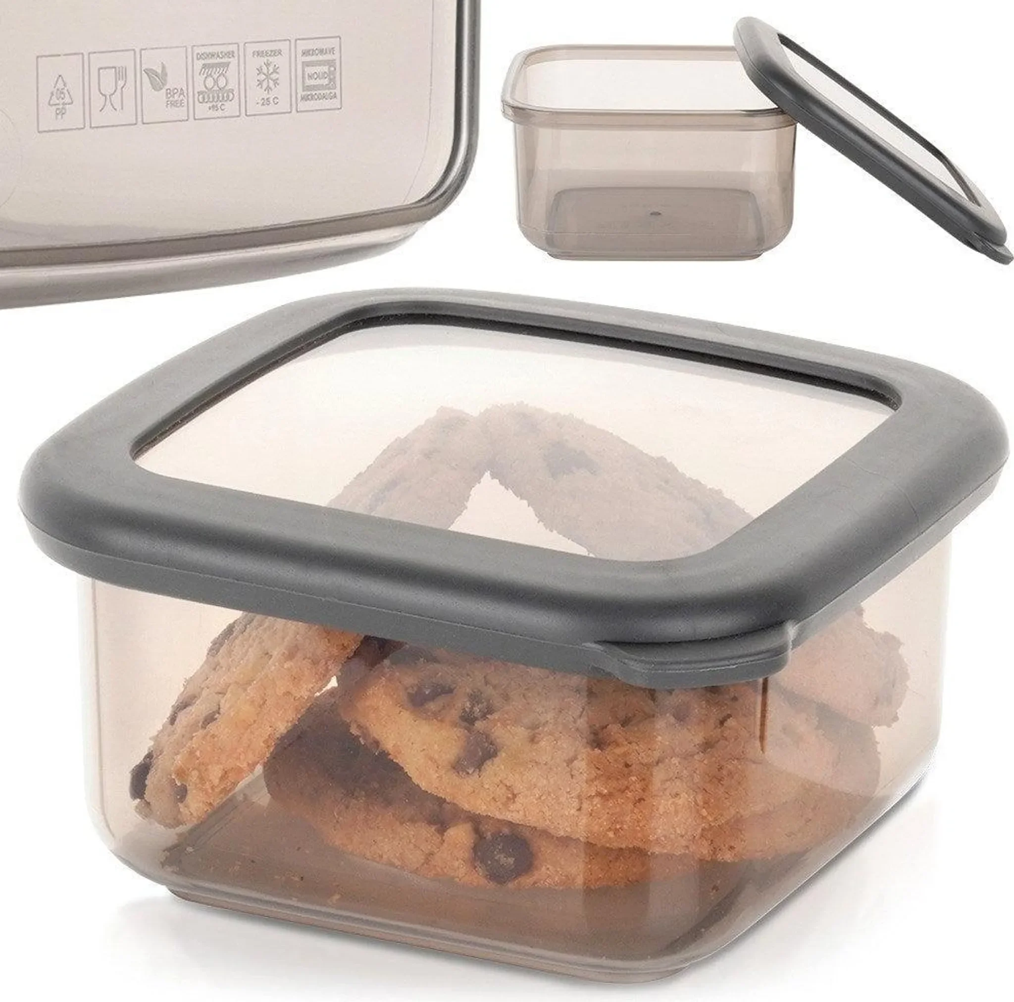 Der luftdicht schließende Deckel schützt zuverlässig vor Feuchtigkeit und Gerüchen und hilft, Frische sowie Aroma der Lebensmittel zu bewahren. Die transparente, rauchgraue Ausführung ermöglicht eine schnelle Kontrolle des Inhalts ohne Öffnen des Behälters.