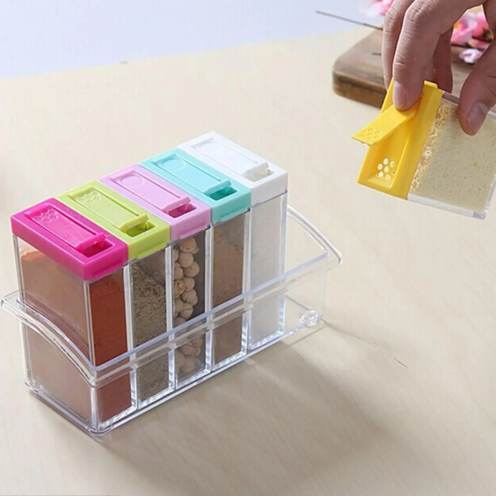 Dieses praktische Set aus sechs transparenten Gewürzbehältern erleichtert die Organisation Ihrer Lieblingsgewürze in der Küche. Dank des klaren Kunststoffs ist der Inhalt jederzeit gut sichtbar, sodass Sie schnell zum richtigen Gewürz greifen können.