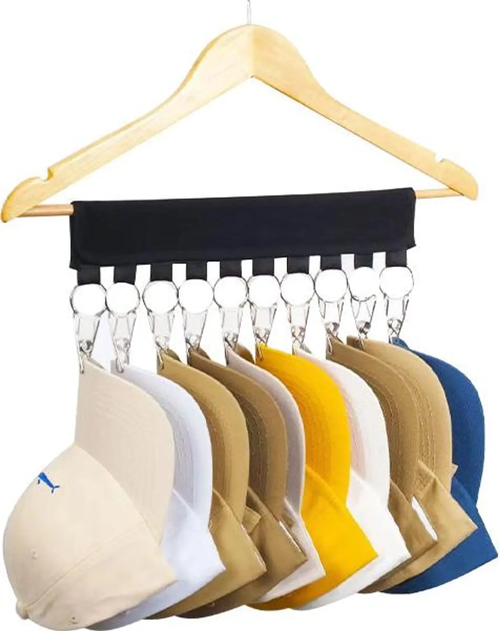 Jeder Organizer verfügt über zehn stabile Clips, die die Kappen sicher fixieren und zuverlässig vor Knicken schützen. Das Set besteht aus zwei Organizern und bietet somit Platz für bis zu 20 Hüte – ideal für Schlafzimmer, Ankleidezimmer oder den Einsatz im Bekleidungsgeschäft.