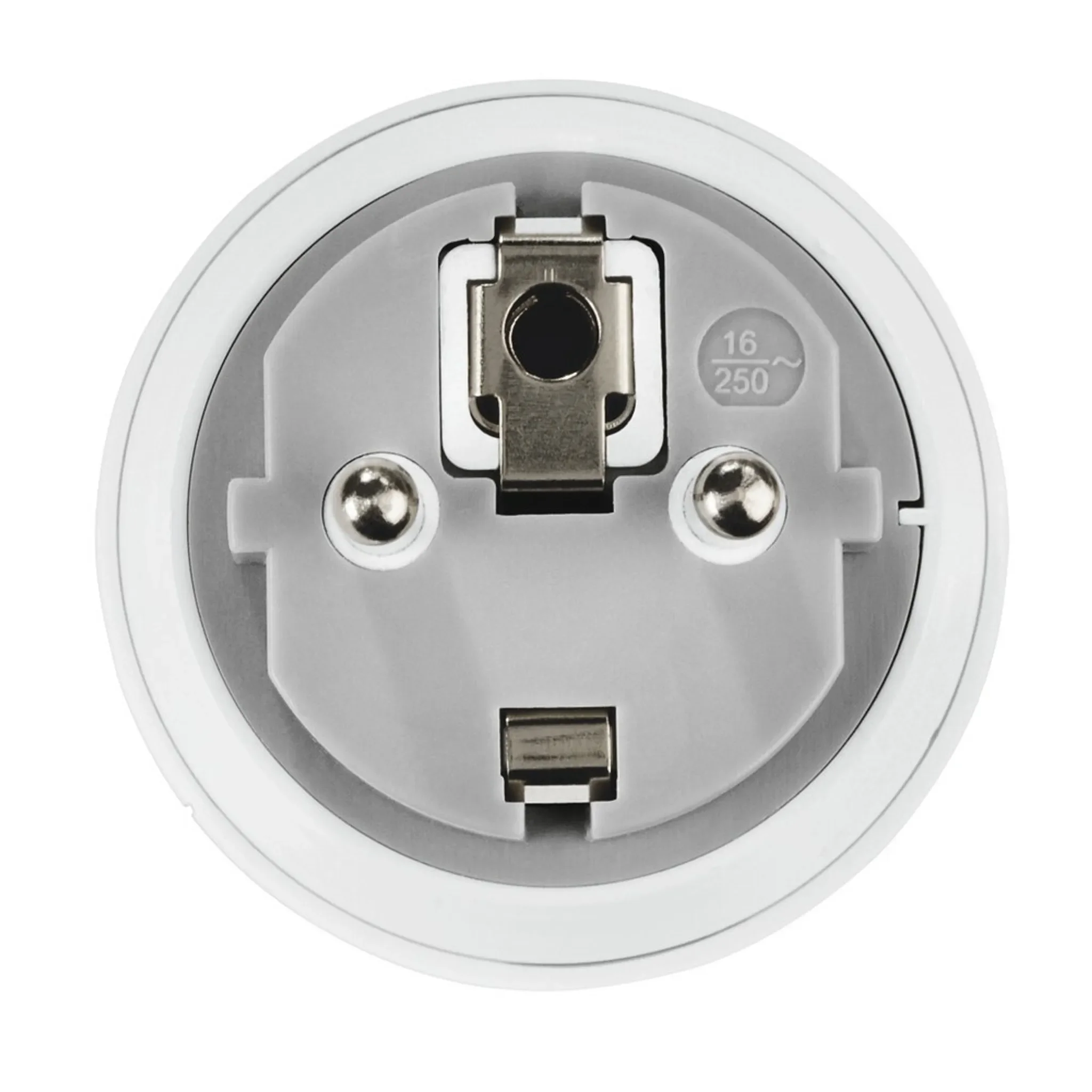 Das kompakte, weiße Gehäuse mit integrierter blauer LED-Anzeige sorgt für eine einfache Handhabung und klare Betriebsanzeige. Dank des weiten Spannungsbereichs ist der Adapter besonders flexibel einsetzbar und ein praktischer Begleiter für Reisen innerhalb Europas.