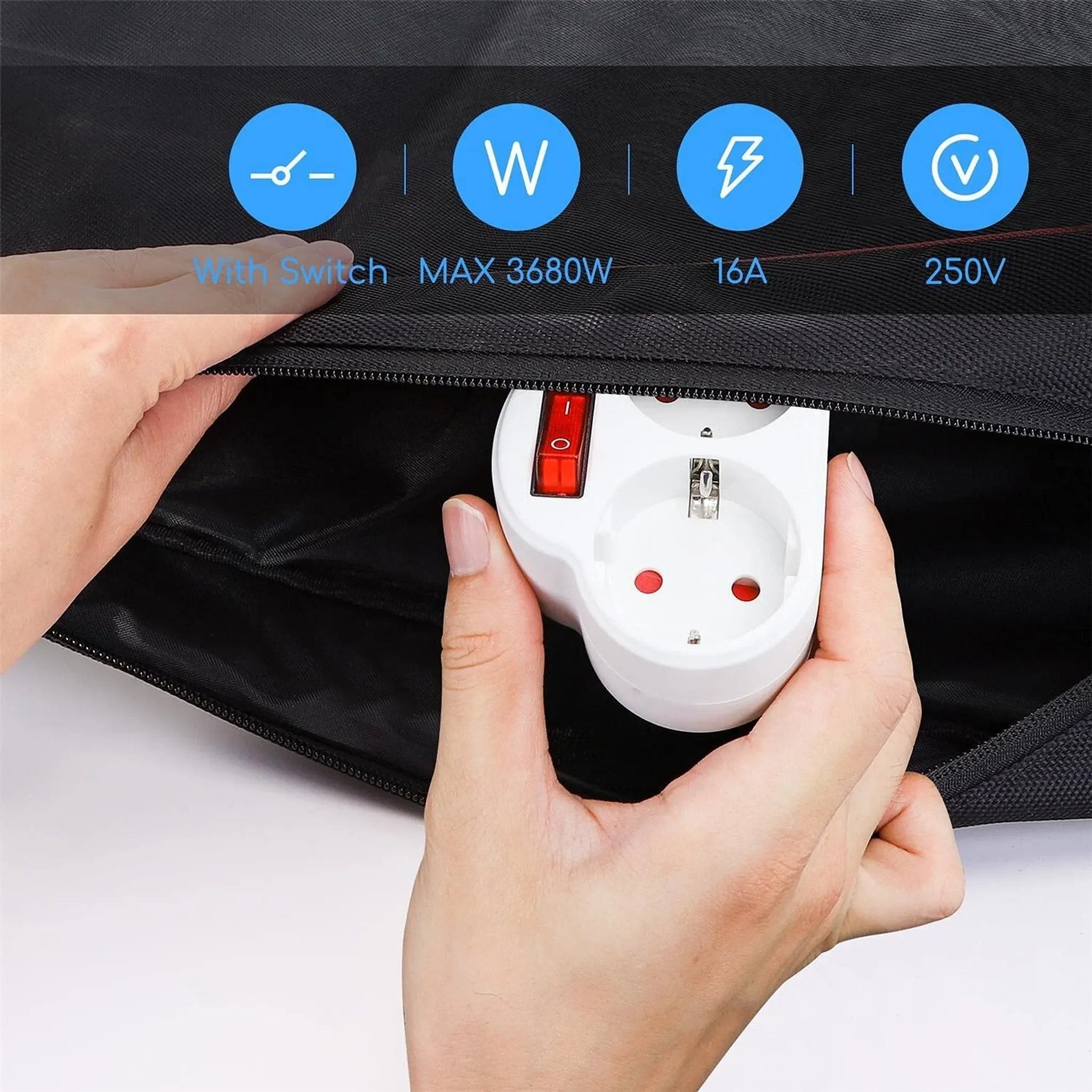 Das kabellose, platzsparende Design verhindert gegenseitige Blockierung der Steckplätze. Der integrierte Ein-/Aus-Schalter ermöglicht das komfortable Abschalten beider Anschlüsse mit nur einem Handgriff – ideal für Schlafzimmer, Küche, Büro oder Wohnbereich.